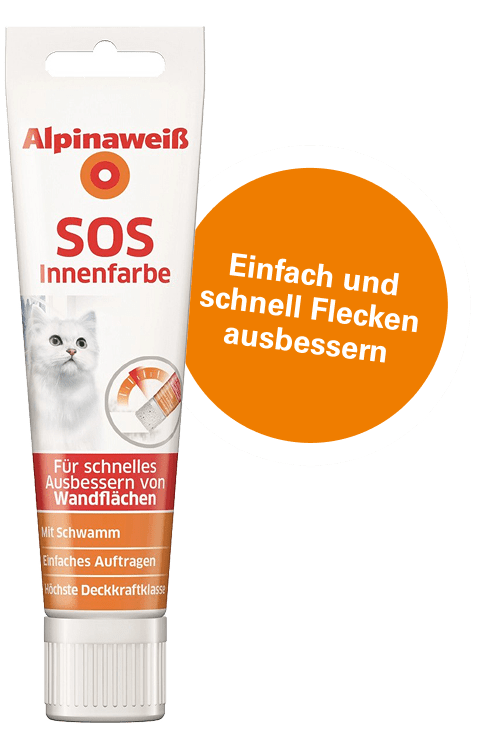 Alpinaweiß Innenfarbe in der praktischen Tube lässt kleine Flecken und Kratzer auf der Wand schnell und sauber verschwinden. Stets einsatzbereit und in bewährter Alpinaweiß Qualität: Einfach Farbtube öffnen, mit dem Schwamm die Farbe auftragen, fertig!