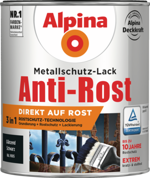 Der Metallschutzlack ist direkt auf Rost streichbar. Mit 3in1 Rostschutz-Technologie: Grundierung, Rostschutz, Lackierung.