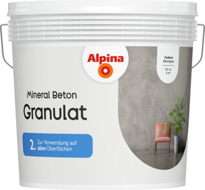 Alpina Mineral Beton Granulat für fugenlose Raum- und Wandgestaltung.