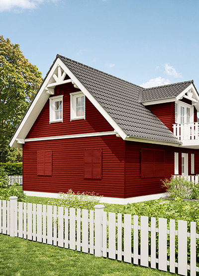 Farbiger Anstrich. Schutz vor Feuchtigkeit, Verschmutzungen, Algen- und Pilzbefall. Lang anhaltend saubere Holzoberflächen, die nicht abblättern oder reißen.