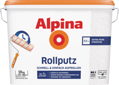 Mit Alpina Rollputz in nur einem Arbeitsschritt zu perfekt strukturierten Wänden: Nur 1 x aufrollen – fertig! Geruchsarm, atmungsaktiv, frei von Löse- und Konservierungsmitteln.