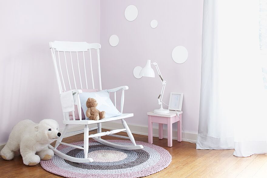 Empfehlenswert sind sanfte Pastelltöne, die für weiche Farbkontraste im Raum sorgen und eine ausgeglichene Atmosphäre schaffen. Dennoch sollte das Babyzimmer nicht zu kontrastarm eingerichtet werden. Denn in den ersten Monaten entwickelt das Baby sein dreidimensionales Sehen und gezielt gesetzte Kontraste, beispielsweise über Deko-Elemente, helfen dem Baby dabei, Entfernungen besser einzuschätzen.
