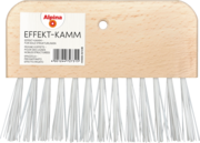 Setzen Sie die Alpina Effekt-Kelle an der Kante an und strukturieren Sie die Wandfläche mit Druck kreuz und quer in kurzen Bewegungen. Streifen Sie überflüssiges Material am Eimerrand ab. Bearbeiten Sie die restliche Wandfläche wie oben beschrieben. Rollen Sie dabei immer ein Stück in die bereits strukturierte Fläche ein, um ein optimales, ansatzloses Oberflächenergebnis zu erzielen („nass in nass“).