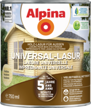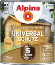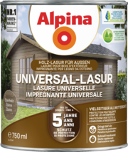 - Holz mit einem verwitterten oder dunklen Voranstrich, das lasiert werden soll, benötigt eine Grundierung mit dem Alpina Holzrenovier-Grund.