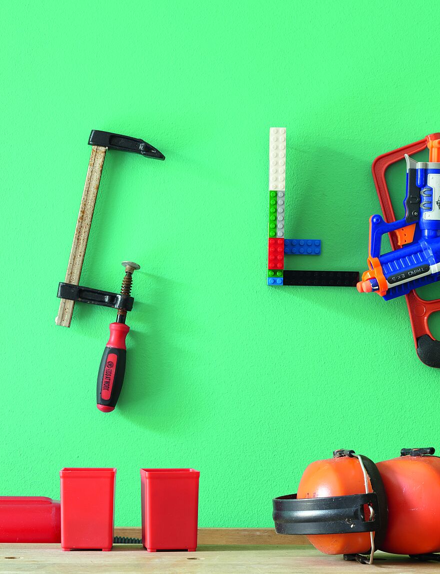 Ist das Kinderzimmer groß genug, bietet es sich an, eine kleine Lernecke mit Schreibtisch einzurichten. Dabei hilft es den Schulkindern, wenn der Bereich nicht nur räumlich, sondern auch farblich klar abgetrennt ist – und die Farbwirkung Kinder zum Arbeiten, Lernen und Basteln animiert. Blaustichige Grüntöne, wie Drachengrün fördern die Konzentrationsfähigkeit, damit Kinder klar denken und strukturiert arbeiten können. Die Grüntöne lassen sich hervorragend mit roten Akzenten und Accessoires kombinieren. Sparsam dosiert, bieten sie dem Auge genau das richtige Maß an Kontrasten und sorgen für Spannung und Dynamik im Kinderzimmer, ohne es zu dominieren. Auch zarte Beigetöne – etwa Hamsterbeige – harmonieren ausgezeichnet mit Grünnuancen. Das sanfte Beige schafft bei intensiven und starken Farben genau den richtigen Ausgleich. Auffällige bzw. unruhige Muster sollten im Lernbereich aber vermieden werden – sie verbreiten eine hektische Stimmung und lenken die Kinder ab.