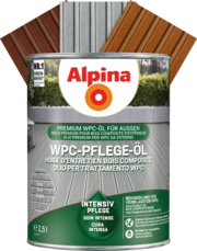 Die Wahl des richtigen Pflege-Öls richtet sich nach der zu behandelnden Holz-Art und seinem Farbton. Da es sich bei WPC um einen Verbundwerkstoff handelt, benötigt das Material eine spezielle Pflege. Die Alpina WPC-Pflege gibt es daher in verschiedenen Farbtönen, um für Ihre Dielen immer die passende Pflege zu bieten. Sie beugt der Bildung von Grünbelag vor und schützt das Material vor zu starker UV-Einstrahlung.