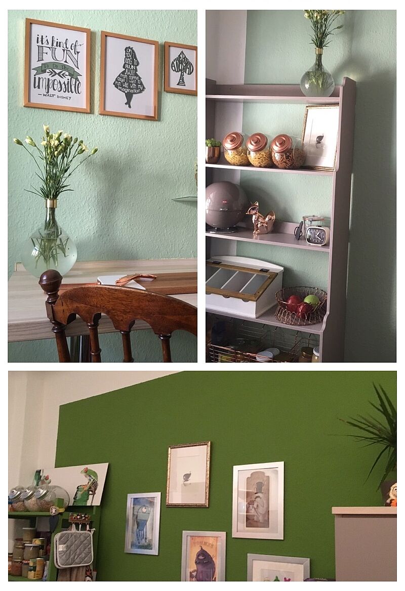 Ich habe schon ziemlich oft meine Wände umgestrichen, jedoch war ich noch nie von einer Farbe so begeistert. Wie vorher schon erwähnt, war diese Küchenwand in einem ziemlich dunklen neonfarbenen Grünton. Diese grandiose Alpina Farbe schaffte es diesen dunklen Ton problemlos zu überdecken ohne vorher die Wand wieder weißen zu müssen. Sie schaffte dies sogar in einer Schicht ohne streifig oder fleckig zu werden. Zudem entsprach die Farbe komplett der versprochenen aufgedruckten Farbe des Deckels und des Farbmusters. Ich kann diese Farbe wirklich weiter empfehlen, damit macht Streichen Spaß :) Meine Inspiration
