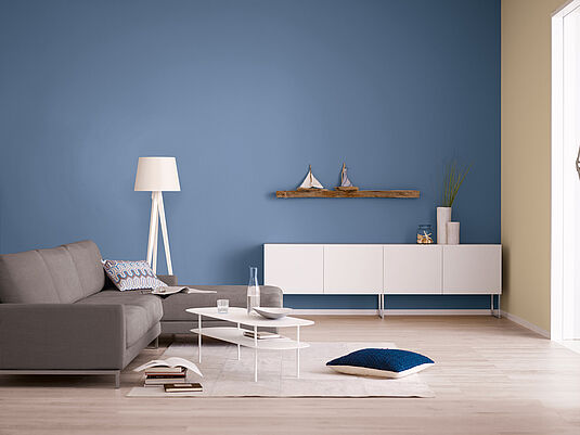 Stimmungsvolles, ruhiges Graublau - Wandfarbe matt