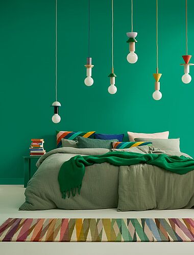Insgesamt umfasst das Alpina Pantone Wandfarben-Sortiment 46 Farbtöne: Die Möglichkeiten für ein stylisches Upgrade der eigenen vier Wände sind reichhaltig. Die Kollektion bietet Interior-Fans alles, was das Herz begehrt: Kräftige, knallige Farben für Mutige, die gerne Statements setzen. Warme, sanfte Nuancen für Romantiker. Dezente, elegante Töne für alle, die es entspannt mögen. Ob das lässige Retro-Rot von „Lobster Bisque“, ein energiegeladenes, elegantes Grün wie „Emerald“ oder das kräftig-leuchtende „Amparo Blue“: Das Farbspektrum lädt ein, individuelle Wohnträume mit Stil zu verwirklichen.