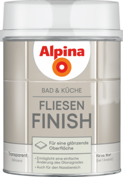Alpina Bad & Küche Fliesen-Finish ermöglicht eine einfache Veränderung des Glanzgrades von Fliesen, die mit Alpina Bad & Küche Fliesen-Lack lackiert wurden.