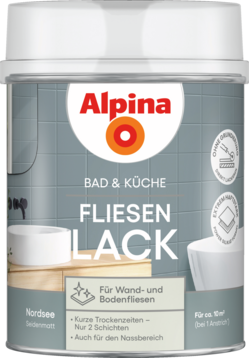 Alpina Bad & Küche Fliesen-Lack schafft zeitgemäße, farbige Gestaltung von Fliesen in Bad und Küche ohne Neuverfliesung. Kann ohne Anschleifen der Fliesen lackiert werden und benötigt weder Grundierung noch Versiegelung.