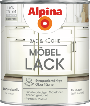 Mit den 10 ausgewählten Farbtönen der Alpina Bad & Küche Möbel-Lacke tauchen Sie in eine stilvolle Gestaltungswelt ein. Alle Nuancen lassen sich harmonisch mit den Alpina Bad & Küche Fliesen-Lacken und Wand-Farben kombinieren. So geben Sie Ihrem alten Badezimmer und Ihrer Küche einen neuen, ästhetischen Look. Alpina Bad & Küche Möbel-Lack kann nach der Grundierung mit Alpina Bad & Küche Möbel-Grund auf nahezu allen gängigen Möbeloberflächen verwendet werden.