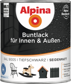 Alpina Buntlack für Innen & Außen - Tiefschwarz, seidenmatt