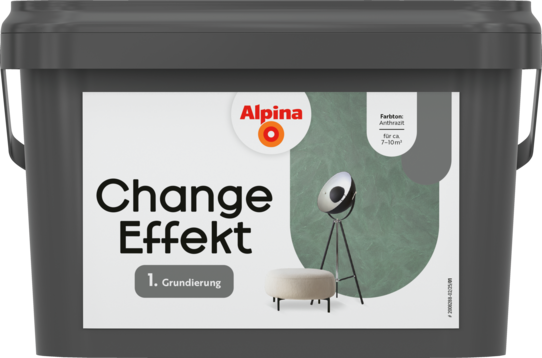 Entdecke zum Beispiel den Alpina Change Effekt: Ein faszinierendes Farbenspiel in Grün, Türkis und Blau. Je nach Lichteinfall und Betrachtungswinkel ändert dieser Effekt an der Wand seinen Farbton.