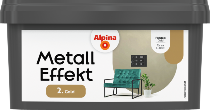 Mit den Metallic Farbtönen Metall Effekt in Gold, Silber oder Roségold kannst du in deinem Zuhause edel und luxeriös anmutende Akzente setzen. Oder du sorgst mit unserem Rost Effekt im Aussehen von schön gealtertem Eisen für einen warmen und nostalgischen Look.