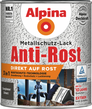 Die 3in1 Rostschutz-Technologie (Grundierung + Rostschutz + Lackierung) der Alpina Metallschutz-Lacke vereint eine ausgezeichnet haftende Grundierung mit einem wirkungsvollen Langzeit-Korrosionsschutz und einer dickschichtigen Lackierung. Dadurch und durch die Anwendung direkt auf Rost verringert sich der Zeitaufwand gegenüber herkömmlichen Lacken deutlich.