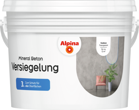 | Untergrund | Als abschließende Schutzschicht wird die Alpina Mineral Beton Versiegelung auf die mit Alpina Mineral Beton bearbeitete Oberfläche aufgetragen. Der Untergrund muss frei von Staub, Schmutz, Fett, Öl, Wachs und anderen Verunreinigungen sein. Der Untergrund sollte trocken sein, da Feuchtigkeit die Haftung der Versiegelung beeinträchtigen kann. |