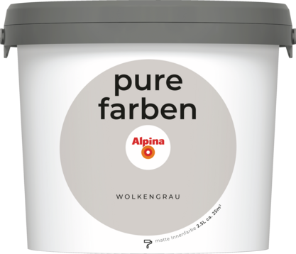 Vorbereitung ist alles: Alpina pure farben ist tropfgehemmt und dadurch leicht zu verarbeiten. Dennoch: Möbel, Fußböden und alles, was dir wichtig ist, solltest du mit einer Folie abdecken. Spritzer direkt mit einem feuchten Schwamm wegwischen. Bevor du startest, die Farbe gut aufrühren. Wenn du an einer zusammenhängenden Fläche mehrere Gebinde des gleichen Farbtons verarbeiten willst, vermisch das Material vor Verarbeitung.
