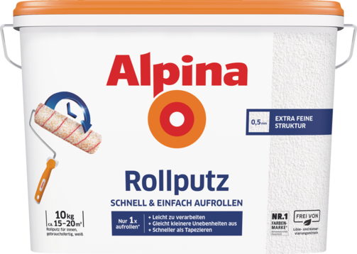 Der Alpina Rollputz setzt den Maßstab hinsichtlich Verarbeitungs-Convenience und rundum überzeugender Produktqualität. In nur einem Arbeitsschritt lassen sich mit dem Alpina Roller hoch attraktive, fein strukturierte Oberflächen erzielen.