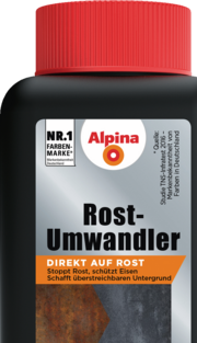 Der Alpina Rost-Umwandler stoppt Rost durch die Bildung einer schwarzen Schicht, die den Rost wirksam neutralisiert. Es schützt das Eisen, schafft einen überstreichbaren Untergrund und stärkt die Haftung des Folgeanstriches.