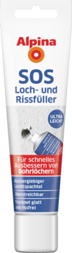 | Geeignetes Werkzeug | Alpina SOS Loch- und Rissfüller kann direkt aus der Tube verarbeitet werden. Bei Bedarf Oberfläche mit einem Spachtel glätten. |