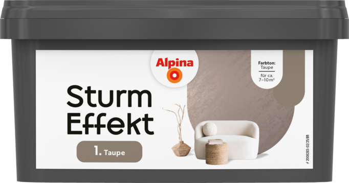 - Sturm Effekt wird in einem Arbeitsschritt mit der Alpina Bürste verarbeitet und sind in drei Farbtönen erhältlich: Silber, Anthrazit und Taupe.