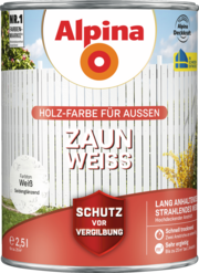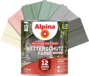 Erstanstrich von rohem Holz im Außenbereich mit Alpina Holzisolier-Grund. Nadelhölzer vorher zusätzlich mit Alpina Holzschutz-Grund vorbehandeln. Alpina Wetterschutz-Farbe ist verarbeitungsfertig eingestellt. Verarbeitung mit Borstenpinsel und Rolle.