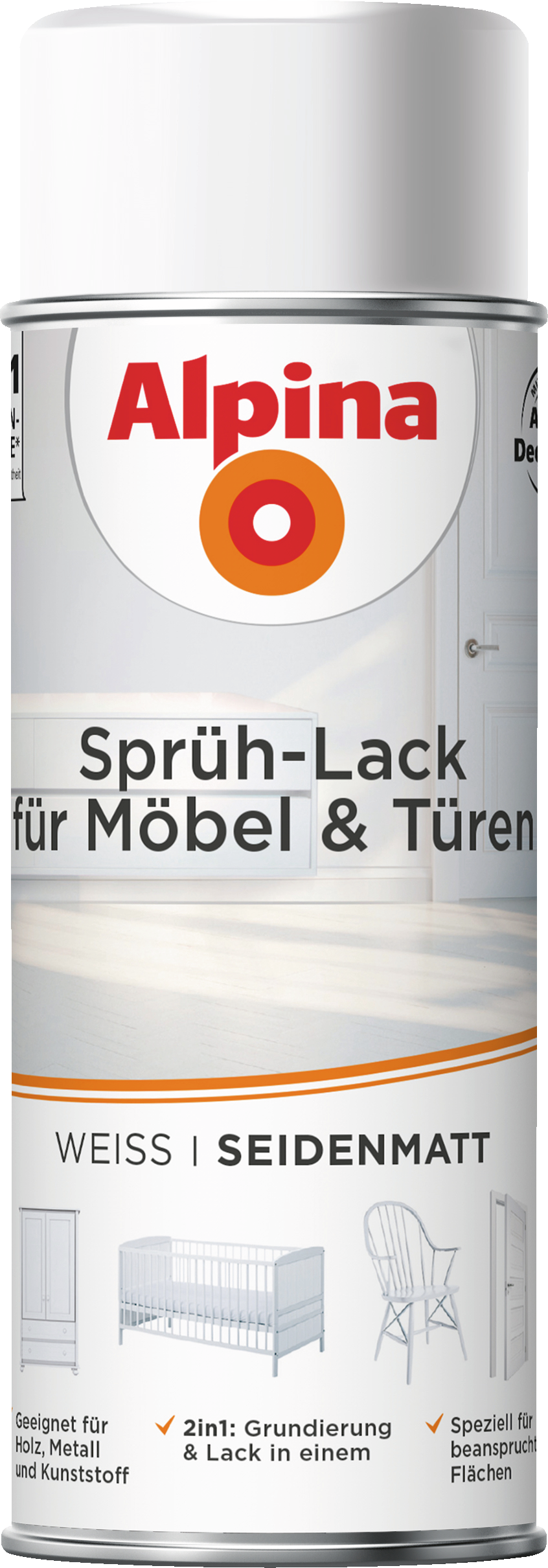Seit über 100 Jahren steht Alpinaweiß für strahlendes Weiß und ist heute Europas meistgekaufte Wandfarbe. Passend dazu bietet Alpina die ideale Lösung für alle Lackanwendungen rund ums Haus: Der Alpinaweiß Weißlack ist universell einsetzbar, widerstandsfähig und umweltschonend. Der Sprüh-Lack eignet sich für kleine, filigrane und schwer zugängliche Objekte und der SOS Sprüh-Lack ist die perfekte Ergänzung für kleinere Reparaturen. Alle Alpinaweiß Lacke verfügen über den original Weißton der Wandfarbe – ideal für einheitliche, stimmige und hochwertige Lackierergebnisse.