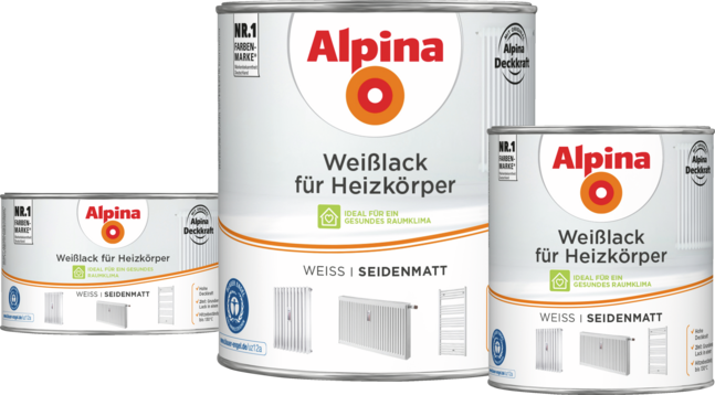 Durch seine integrierte Grundierung eignet sich der Alpina Weißlack für Heizkörper ideal für Neu- und Renovierungsanstriche von Metalloberflächen im Innenbereich, z. B. von Guss-, Stahl- und Flachheizungen sowie für Rohrleitungen in Warmwasser- und Dampfheizungsanlagen. Der Lack ist hitzebeständig bis 130 °C und glänzt mit hervorragender Kanten- und Flächenabdeckung.