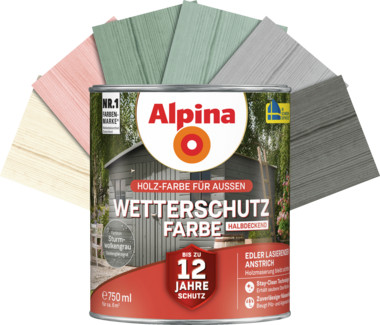 Die Alpina Wetterschutz-Farben sind die ideale Lösung für eine besonders lang anhaltende, farbige Gestaltung von Holzobjekten im Außenbereich wie von Gartenhäusern, Fassaden und Zäunen. Die wetterfesten Holzschutz-Farben bilden eine ultraelastischeSchutzschicht, die die natürlichen Holzbewegungen mitmacht und somit nicht abblättert oder reißt.