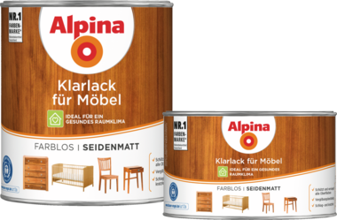 Der klare Alpina Möbellack eignet sich für Neu- und Renovierungsanstriche von Holz im Innenbereich, z. B. für Tischplatten, Stühle, Kommoden, Regale und Schränke. Der Klarlack grundiert und lackiert in einem Arbeitsschritt. Zudem ist er äußerst strapazierfähig, trittfest, abriebfest und kratzfest.Der klare Alpina Möbellack eignet sich für Neu- und Renovierungsanstriche von Holz im Innenbereich, z. B. für Tischplatten, Stühle, Kommoden, Regale und Schränke. Der Klarlack grundiert und lackiert in einem Arbeitsschritt. Zudem ist er äußerst strapazierfähig, trittfest, abriebfest und kratzfest.