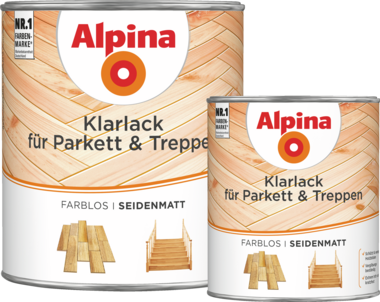 Der Alpina Parkettlack für stark beanspruchte Holz-Böden grundiert und versiegelt Parkettböden, Böden aus Kork und Treppenbeläge in nur einem Anstrich. Er ist besonders strapazierfähig, trittfest, abriebfest und kratzfest. Der farblose Lack eignet sich für alle Neu- und Renovierungsanstriche im Innenbereich und ist erhältlich in den Glanzgraden seidenmatt und glänzend.
