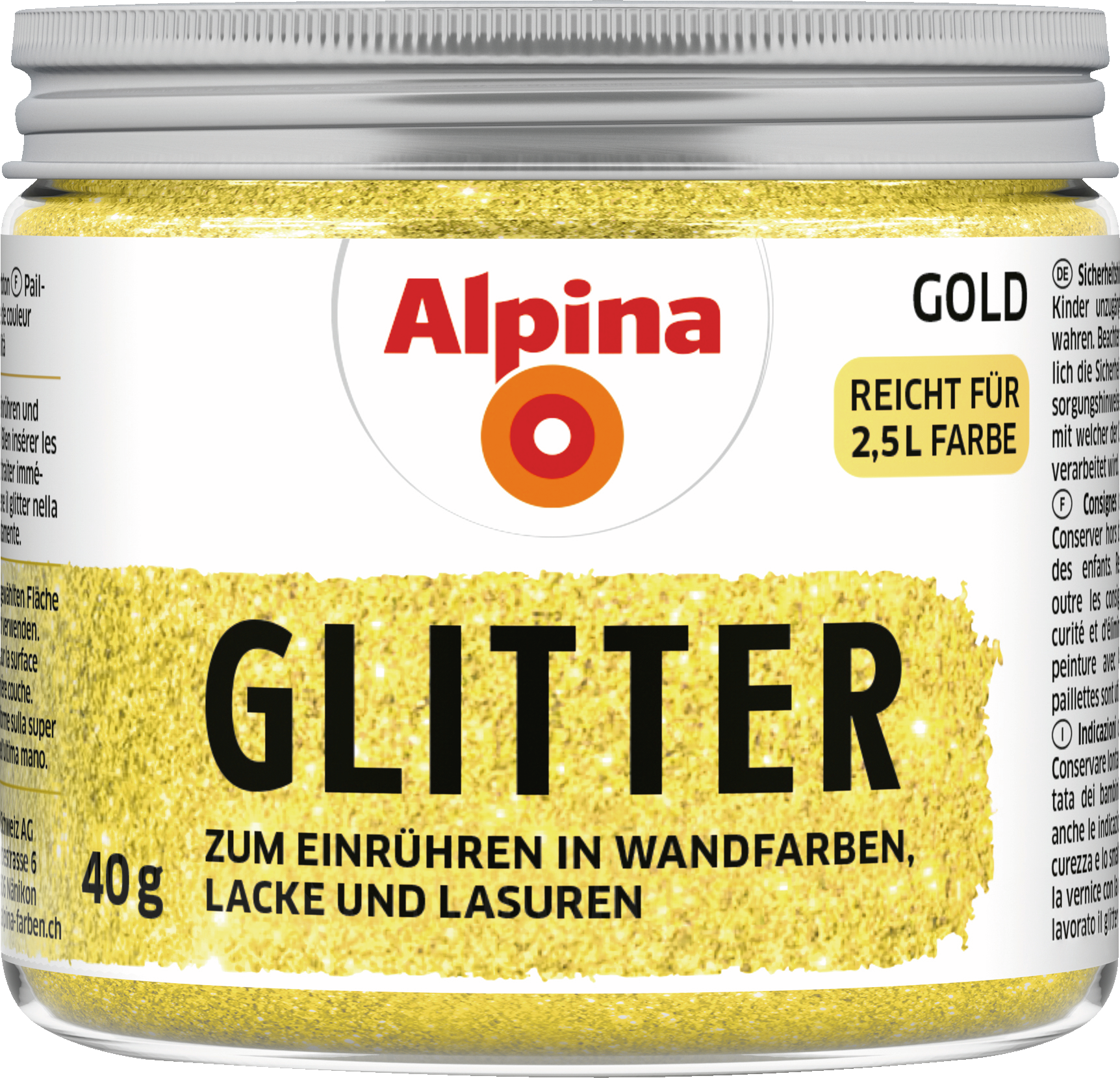 Goldfarbender Glitterzusatz zum Einrühren in Wandfarben, Lacke und Lasuren