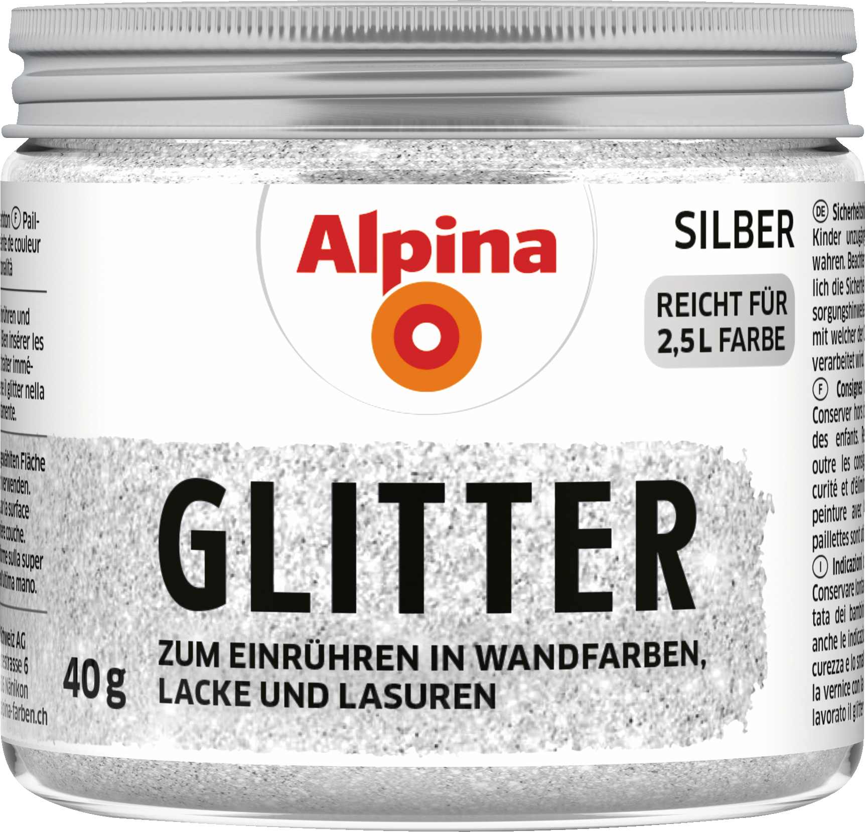 Silberfarbender Glitterzusatz zum Einrühren in Wandfarben, Lacke und Lasuren
