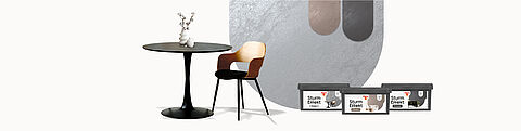 Kreiere mit unserer einfachen Anleitung für den Alpina Sturm Effekt in nur einem Schritt dynamisch anmutende, metallisch schimmernde Wände in Silber, Taupe und Anthrazit.