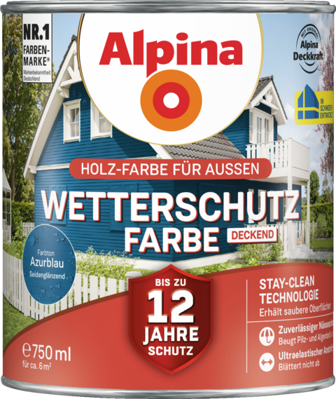 Alpina Wetterschutz-Farbe deckend Azurblau Holzfarbe mit bis zu 12 Jahren Wetterschutz