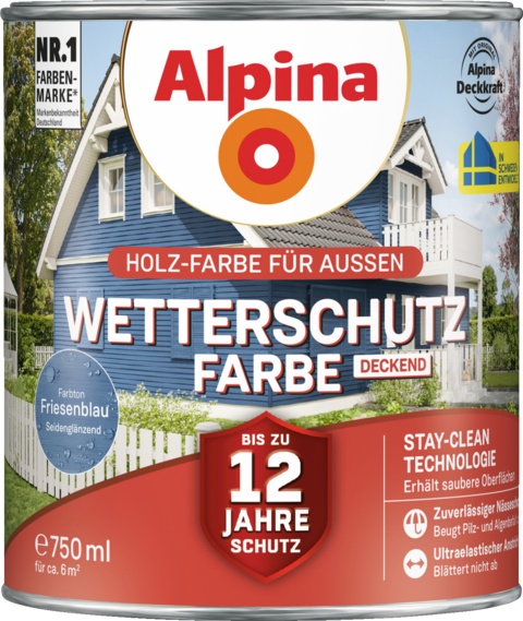 Alpina Wetterschutz-Farbe deckend Friesenblau Holzfarbe mit bis zu 12 Jahren Wetterschutz