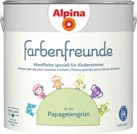 Alpina Farbenfreunde - grüne Wandfarbe speziell für Kinderzimmer Nr. 06 Papageiengrün
