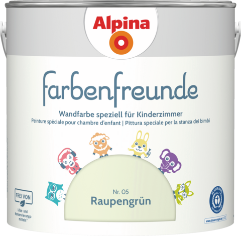 Alpina Farbenfreunde - grüne Wandfarbe speziell für Kinderzimmer Nr. 05 Raupengrün