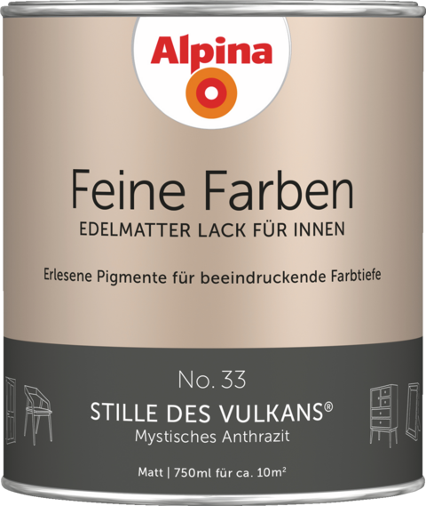 Alpina Feine Farben Lack No. 33 – STILLE DES VULKANS® – Mystisches Anthrazit Edelmatter Lack für innen – Farbfamilie Grau