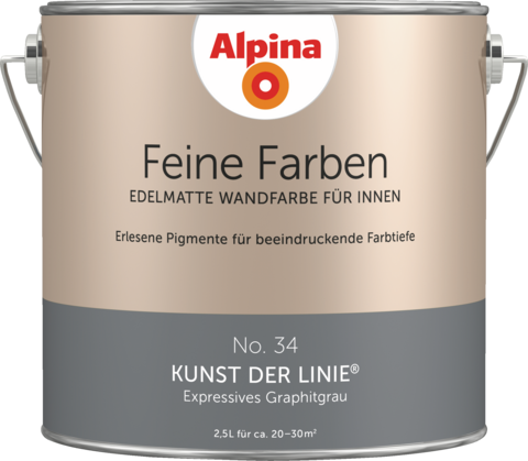 Alpina Feine Farben Innenfarbe No. 34 KUNST DER LINIE - Expressives Graphitgrau Edelmatte Wandfarbe - Farbfamilie Grau