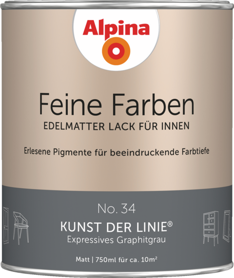 Alpina Feine Farben Lack No. 34 – KUNST DER LINIE® – Expressives Graphitgrau