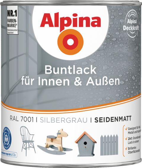 Alpina Buntlack für Innen & Außen - Silbergrau, seidenmatt