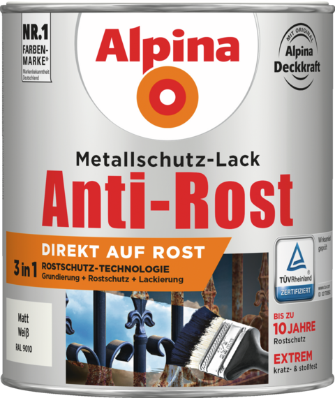 Alpina Anti-Rost Metallschutz-Lack Matt Weiß Direkt auf Rost - mit 3in1 Rostschutz-Technologie