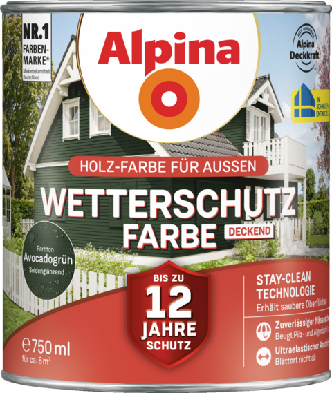 Alpina Wetterschutz-Farbe deckend Avocadogrün Holzfarbe mit bis zu 12 Jahren Wetterschutz