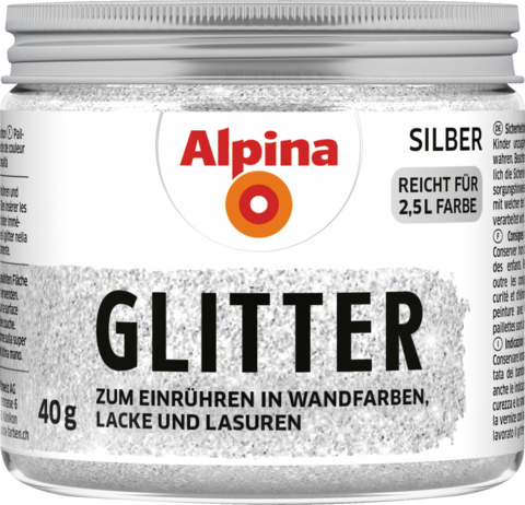 Silberfarbender Glitterzusatz zum Einrühren in Wandfarben, Lacke und Lasuren